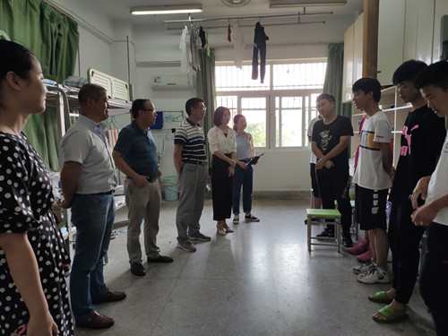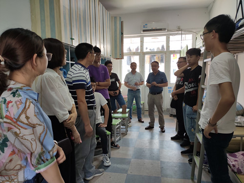 9月8日下午,院党委书记王永金、院长孙佐、副院长桂传友带领党政办、团总支、新生班级辅导员老师前往宿舍看望了2019级新生。