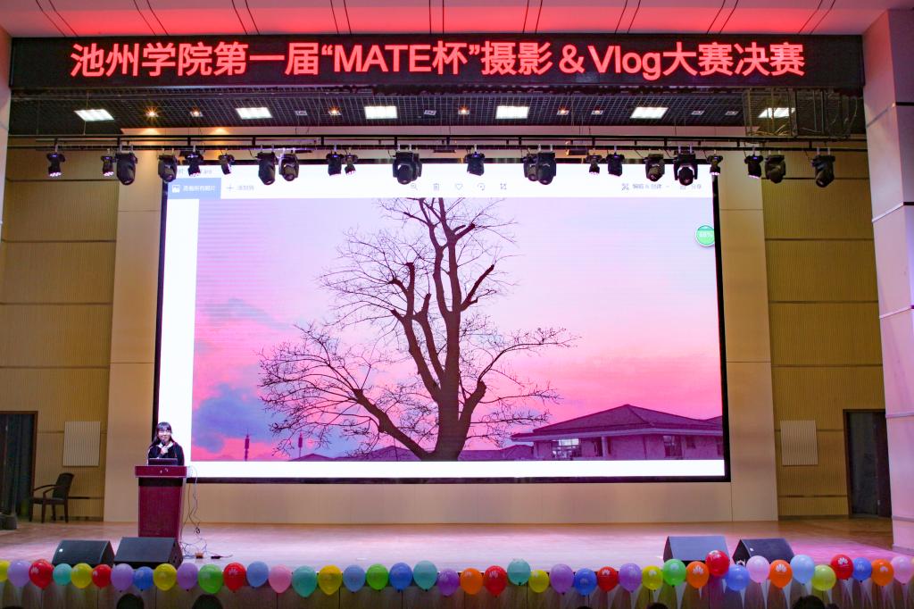 11月22日晚,校团委在博古大礼堂举办第一届“MATE杯”摄影&Vlog大赛决赛,校团委书记程海峰、副书记李旋宇,华为公司负责人程云出席活动。