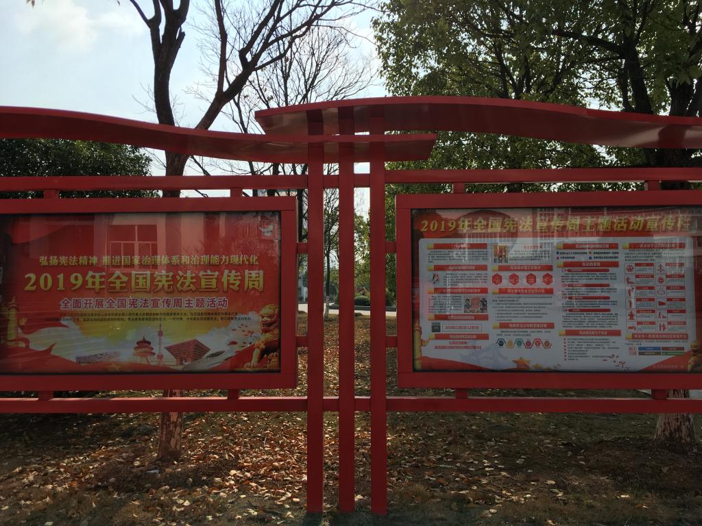 在宣传周内,外国语学院利用宣传橱窗制作了一期宣传宪法专栏、利用教学楼LED电子显示屏滚动播放宣传标语。