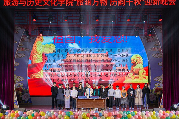 12月16日晚,旅游与历史文化学院“旅涵万物,历韵千秋”迎新晚会在博古礼堂隆重举行。校党委委员、组织部长李恕宏,校团委书记程海峰,学院党政领导班子及师生代表500余人参加了晚会。