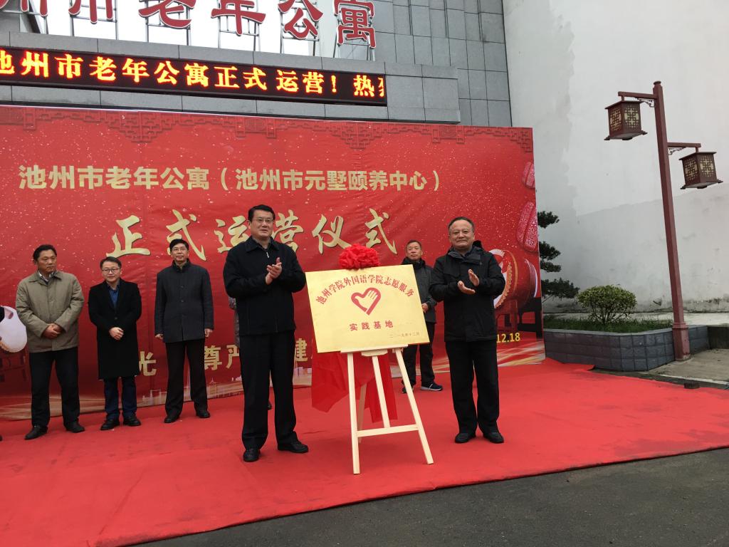 12月18日上午,副校长阳光宁出席池州市元墅颐养中心正式运营仪式,与池州市副市长孙革新共同为best365手机版官方网站外国语学院志愿服务实践基地揭牌。