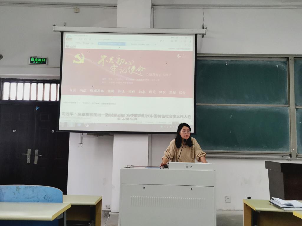 9月25日下午,地理与规划学院学生第一、第二支部在博文楼阶梯教室101开展了以“不忘初心、牢记使命”为主题的党课活动,学生第一支部书记张璐、第二支部书记黄磊以及全体学生党员参加了此次党课,课程由张璐主讲。
