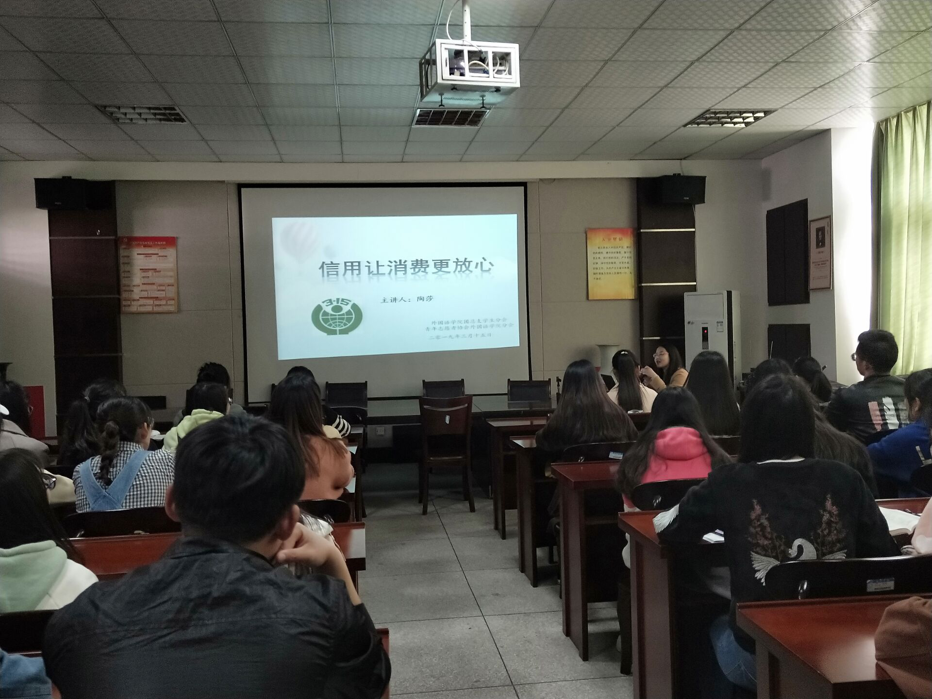 3•15国际消费者权益保护日来临之际,外国语学院团总支在会议室开展了“信用让消费更放心”主题讲座。外国语学院陶莎老师受邀担任本次讲座的主讲人。
