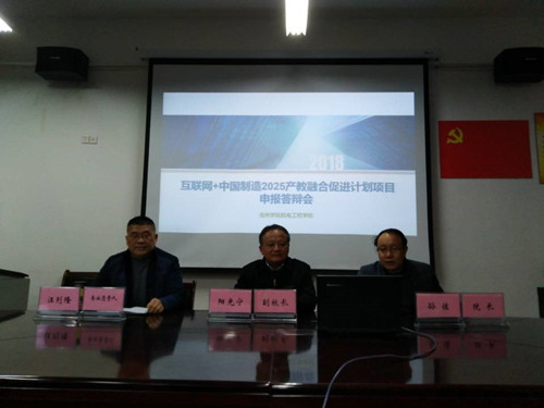 12月8日上午,教育部“互联网+中国制造2025”产教融合促进计划项目远程视频答辩会在逸夫楼316会议举行。副校长阳光宁、机电工程学院院长孙佐、机械专业负责人汪列隆参加答辩会。
