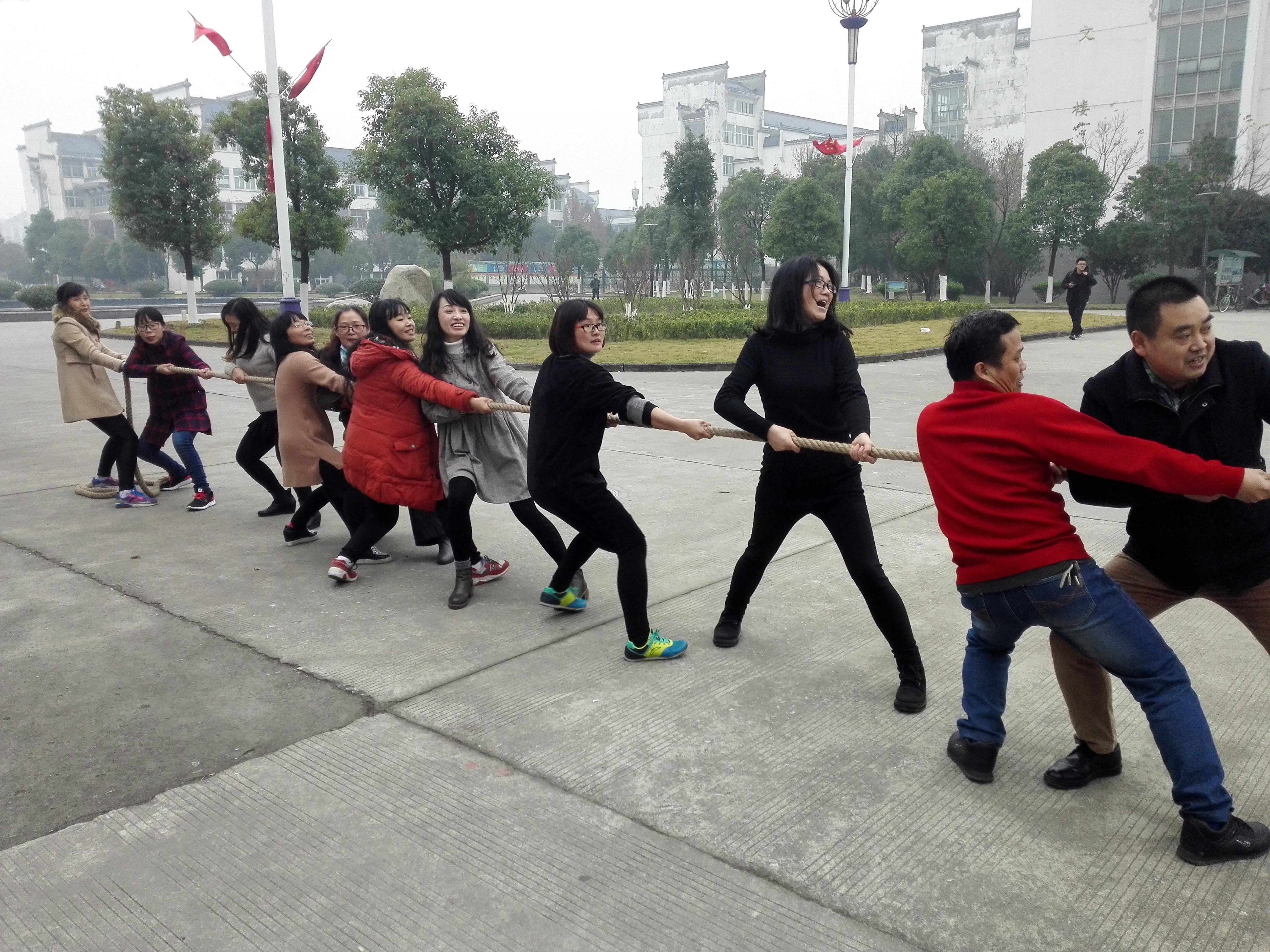 为深入开展全民健身运动,丰富教职工的业余文化生活,外国语学院分工会于11月29日下午举行教职工跳绳和拔河比赛。