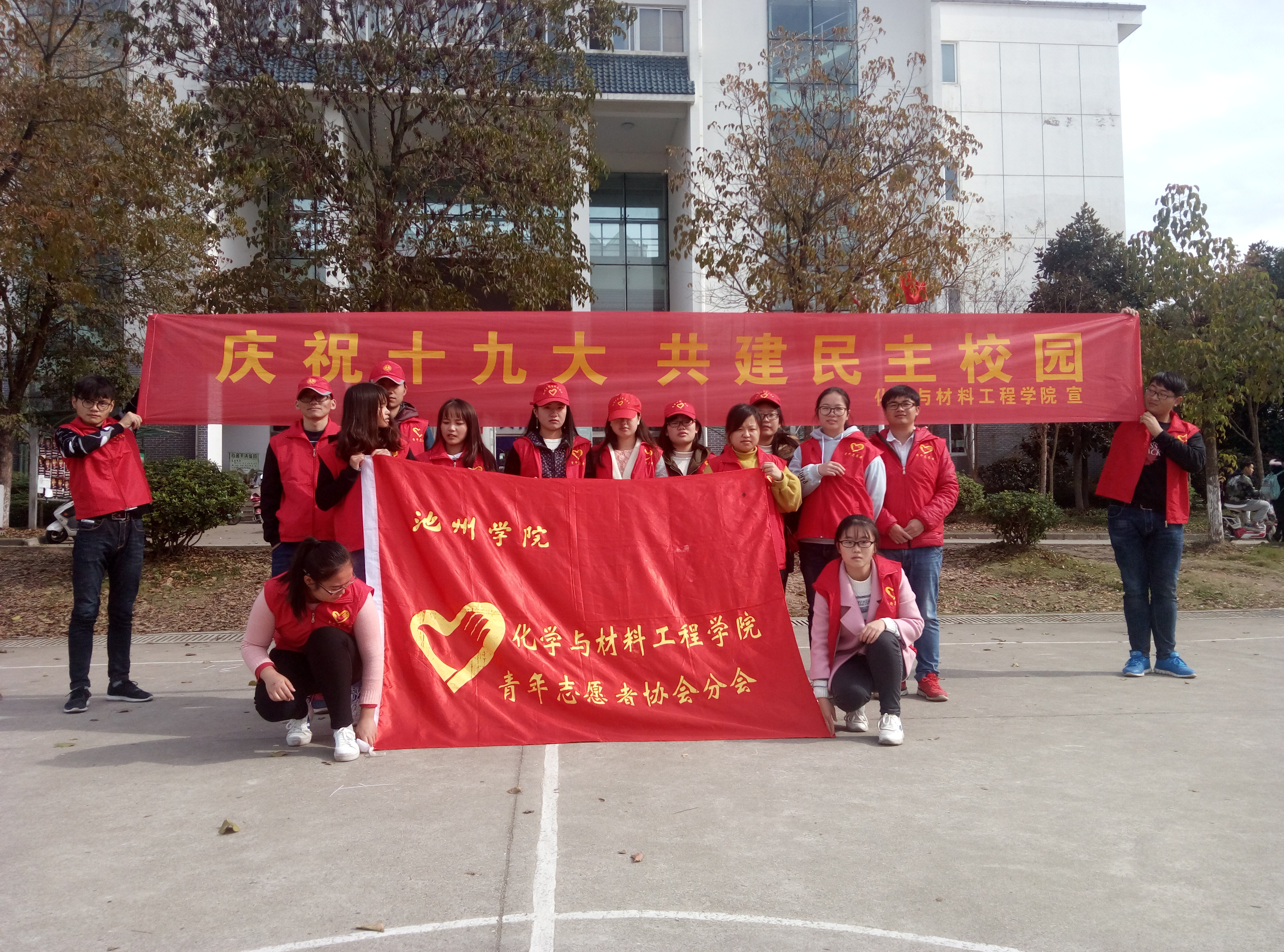 12月5日是第32个国际志愿日,为响应十九大创建文明和谐社会的号召,用实际行动贯彻落实十九大精神,10月21日至12月9日,best365手机版官方网站青年志愿者协会化学与材料工程学院分会开展了系列志愿活动。