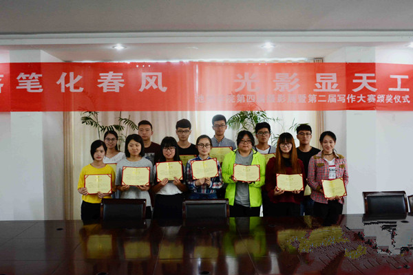 首先,校记者团团长胡珊珊就大赛的具体情况进行了简单发言,随后,胡珊珊宣读了本次颁奖典礼获奖人员名单,其中,16级视觉传达二班的左登位的作品《复苏》和15级音乐学二班周雯的作品《吾心安处是故乡——论中华之文化自信》分别获得了摄影展及写作大赛的一等奖。最后,由操国胜等依次为获奖同学颁发荣誉证书,并合影留念。