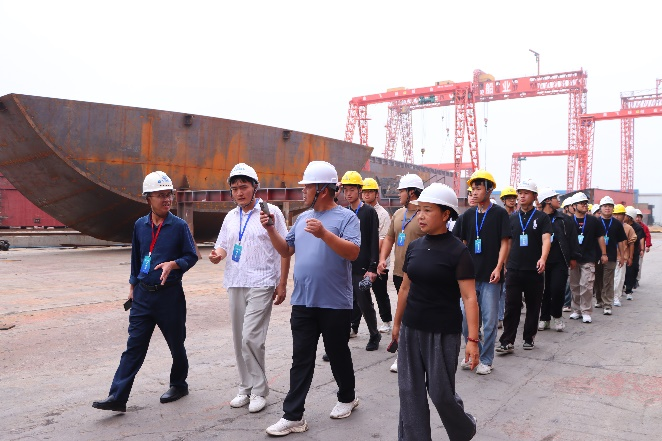 随后在池州智慧时代船舶工程有限公司,同学们接触到船舶数字化建模、结构优化等设计环节。企业负责人系统介绍发展历程与技术优势,并现场发出见习与就业邀请,引发学生积极回应。