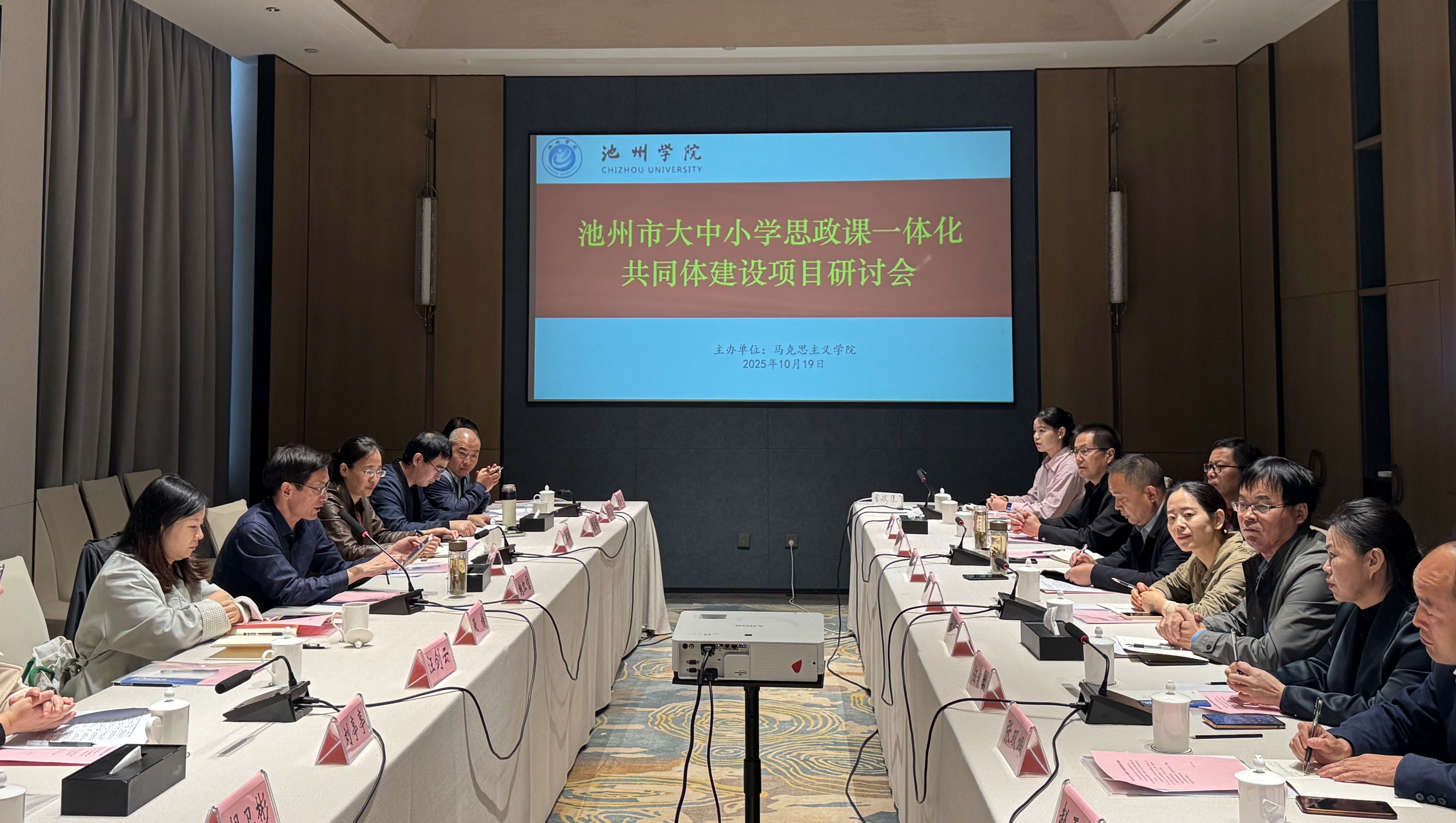 为深入贯彻落实习近平总书记关于思政课建设的重要指示精神,扎实推进池州市大中小学思政教育一体化建设,10月19日,池州市大中小学思政课一体化共同体建设项目研讨会在池州大九华宾馆报告厅顺利举办。池州市大中小学思政课一体化建设指导组成员,市、县(区)思想政治(道德与法治)教研员,以及各高校马克思主义学院教师代表等40余人参会。会议由best365手机版官方网站马克思主义学院承办。