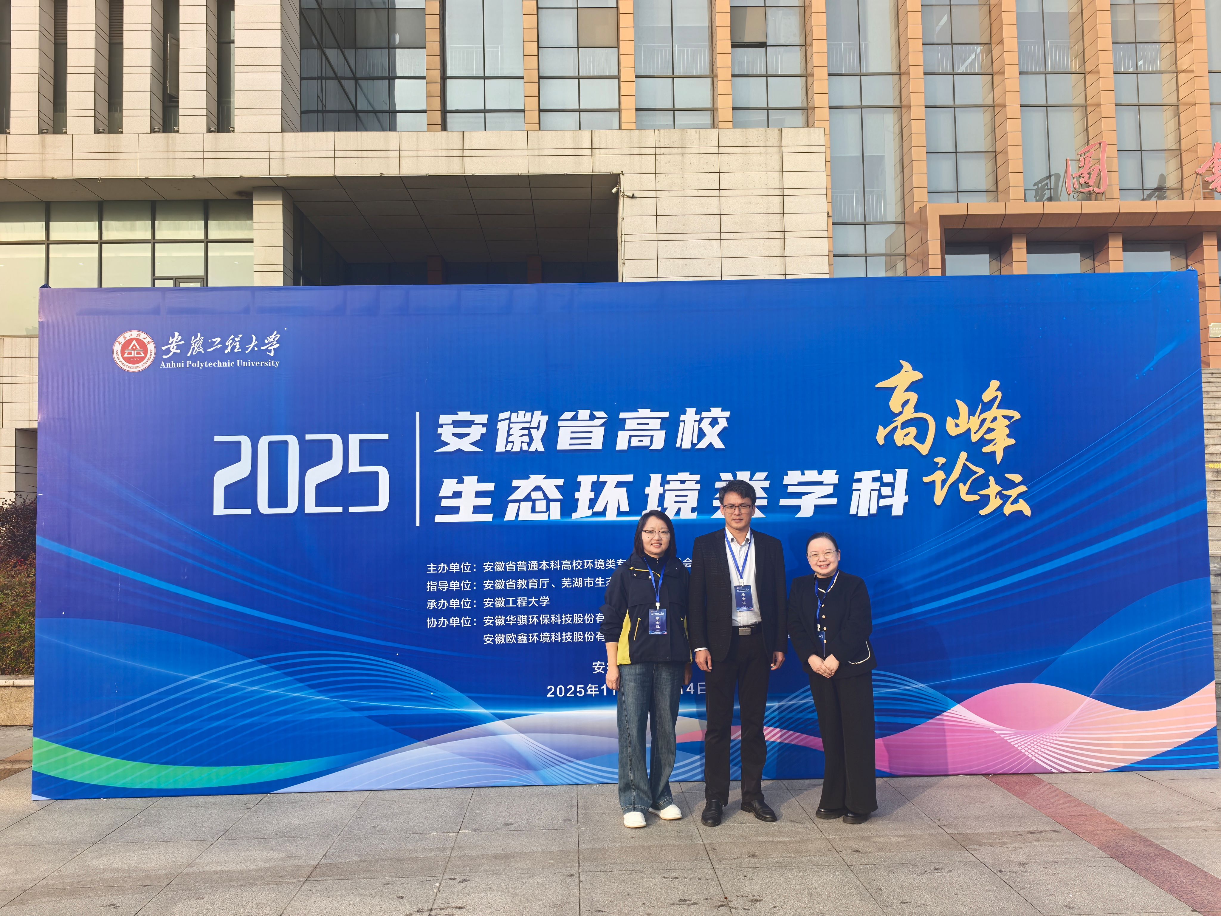 11月13日至14日,由安徽省普通本科高校环境类专业合作委员会主办、安徽工程大学承办的2025年安徽省高校生态环境类学科高峰论坛在芜湖顺利召开。材料与环境工程学院贾莉、何小青、傅妍芳三位教师应邀参会。