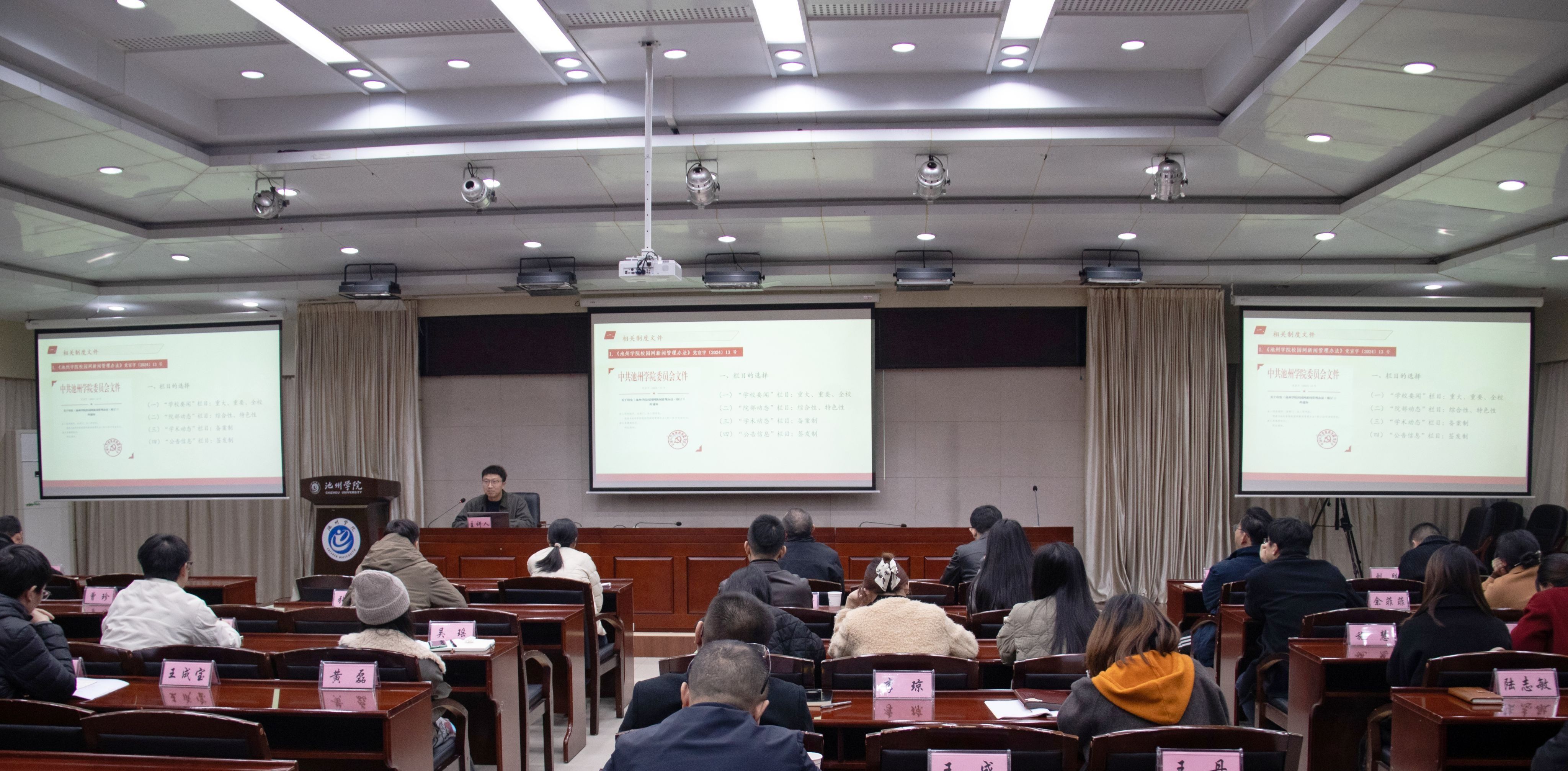 11月27日,best365官网2025年科级干部暨年轻干部能力提升第二期培训班第四讲在行政南二楼会议室举行。本次培训由机关党委书记、党委组织部副部长余丙南主持,办公室副主任陈周庆、党委宣传部新闻宣传科科长袁梦成分别围绕公文写作、会议组织和新闻宣传作专题授课。