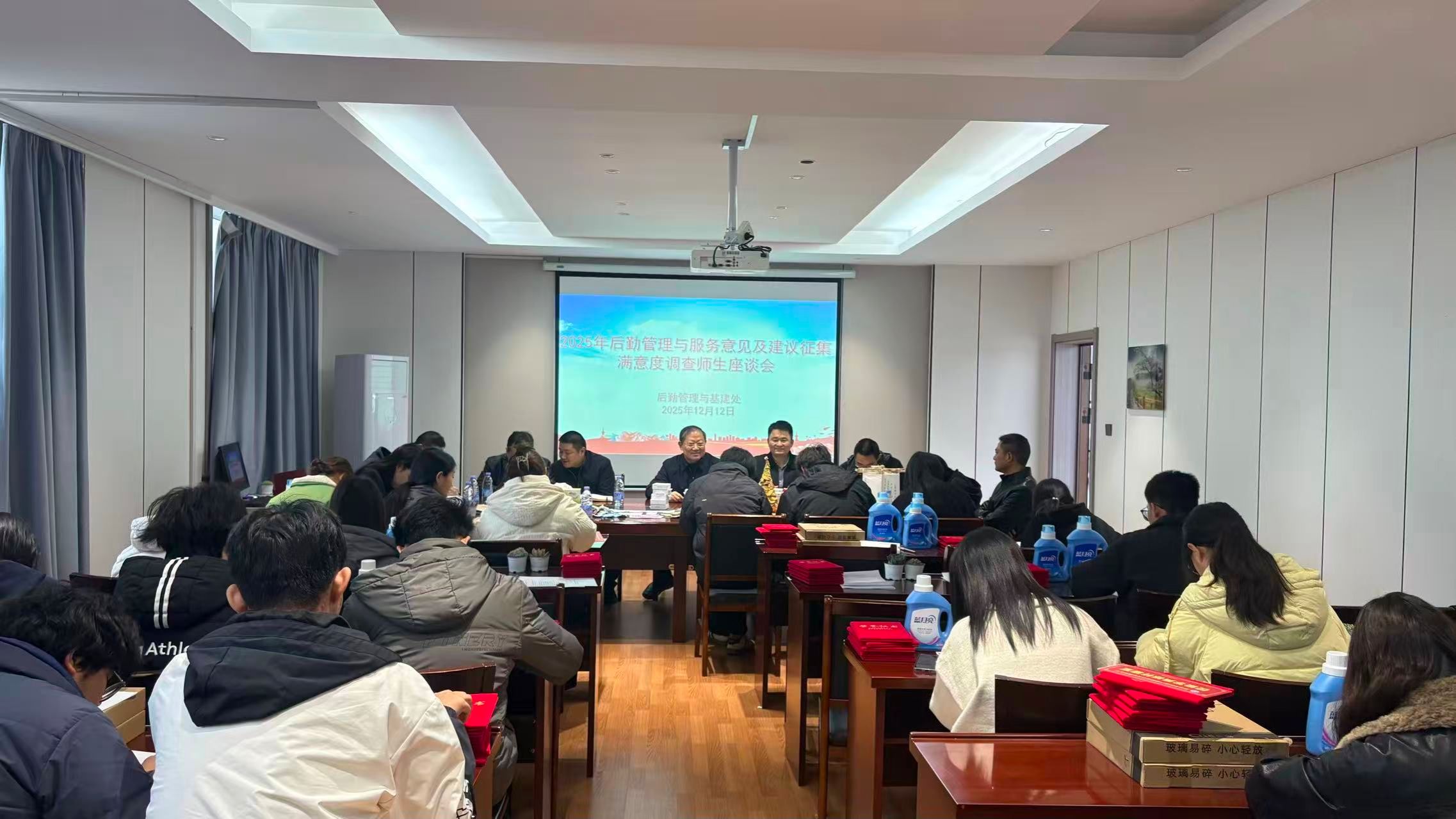 2025年12月12日下午,后勤管理与基建处在处会议室组织召开了2025年后勤管理与服务工作师生座谈会,旨在征集意见建议、开展满意度测评。各二级学院师生代表近40人参加会议。座谈会由后勤管理与基建处处长张甫彬主持。