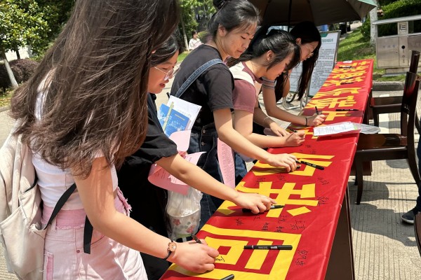 活动通过摆放宣传展板、宣教节能知识,向师生派发节水节电倡议书、提升师生节能意识,现场签名、吸纳师生参与节能行动等形式开展,吸引了广大师生驻足观看,并纷纷在“节能降耗 低碳生活 你我同行”宣传标语上签下自己的名字。