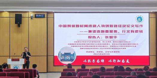 6月11日上午,北京师范大学艺术与传媒学院教授、博士生导师张智华在公共教学楼西报告厅为文学与传媒学院师生作题为《中国刑侦题材网络剧人物创新路径及论文写作——兼谈选题要聚焦、行文有逻辑》的学术报告,广播电视编导专业200余名师生聆听了报告。报告会由文学与传媒学院副院长高祥华主持。