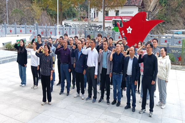 参观结束后,在纪念馆前,全体党员面向党旗,重温入党誓词,庄严而肃穆地进行宣誓,表达对党的忠诚,为党的事业奋斗终生的决心!