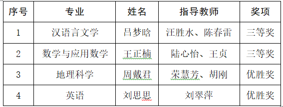 近日“田家炳杯”第八届全国师范院校师范生教学技能竞赛在浙江师范大学举办,best365官网选拔5名优秀学生参加了比赛,最终来自汉语言文学专业吕梦晗和数学与应用数学专业王正楠2位同学获得三等奖、地理科学专业周戴君和英语专业刘思思2位同学获得优胜奖。