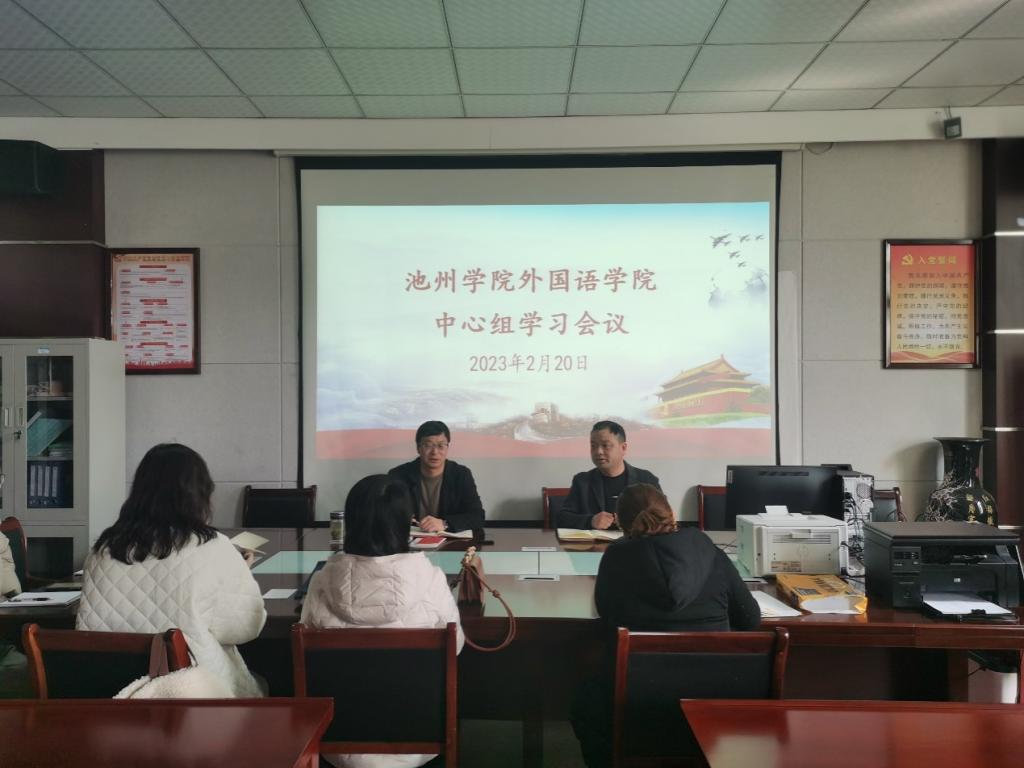 2月20日下午,外国语学院在会议室举行党委中心组学习暨支部书记工作例会。外国语学院党委委员及各支部书记参加了会议。会议由外国语学院党委书记张乐民主持。