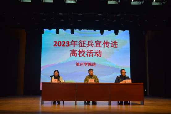 为扎实做好大学生征兵工作,帮助广大师生了解入伍政策,4月20日上午,校武装部与属地征兵办公室在best365官网音乐报告厅联合开展了征兵宣传活动,池州军分区国防动员处处长渠胜红、贵池区人武部政委冯涛出席活动。活动由校武装部副部长王娟主持。
