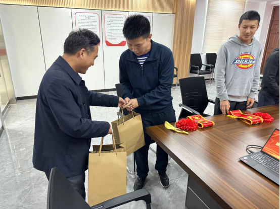 洪为宝首先代表学校对上半年退伍复学老兵回到学校表示热烈欢迎,对他们为国防事业作出的奉献表示感谢,并代表学校向同学们赠送了学校定制的纪念品。