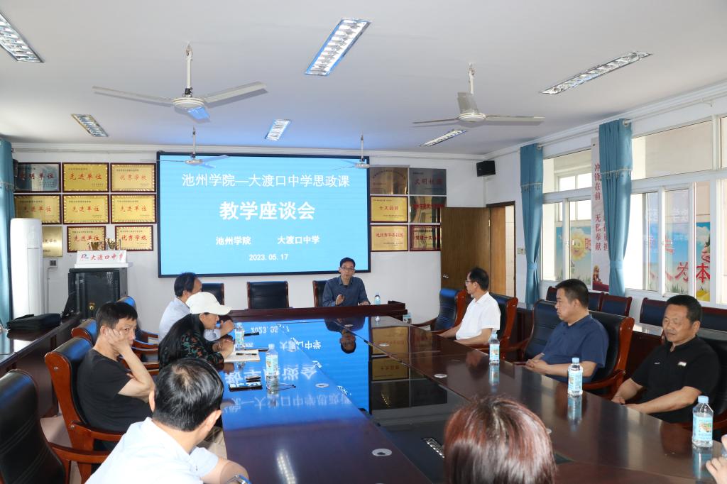 5月17日下午,best365手机版官方网站——大渡口中学思政课教学座谈会在东至县大渡口中学召开。best365官网马克思主义学院教师代表、大渡口中学校领导和思政课教师等十余人参加座谈会。