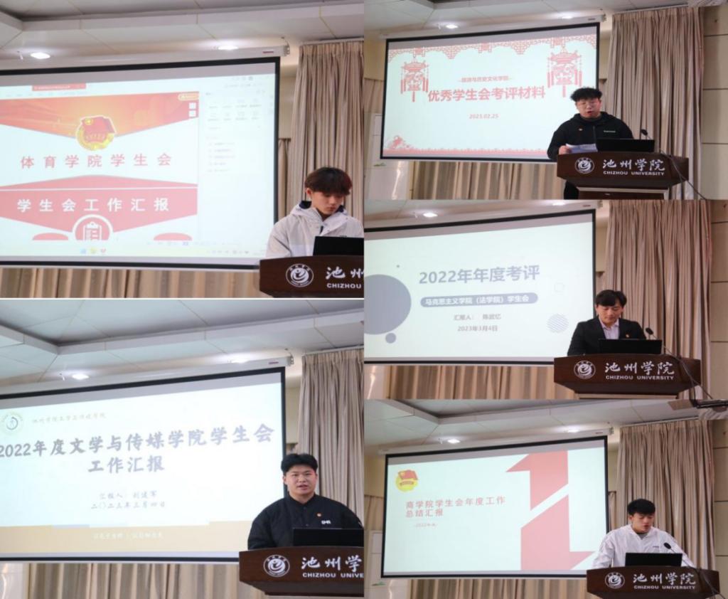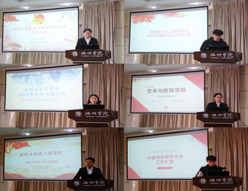 各二级学院学生会执行主席围绕思想武装、组织建设、活动开展、宣传推广、未来展望等方面对2022年度学生会工作进行了详细地展示汇报,分享了各自学生会工作中的活动特色和典型经验,同时分析了工作中存在的问题和不足,并就今后如何进一步深化学生会组织改革、完善学生会工作机制、提高学生会工作效能等方面展开思考和交流,充分展示了学生会组织积极向前、团结拼搏的良好精神风貌。