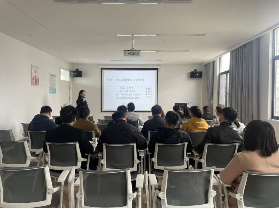 3月7日下午,池州市贵池区人民检察院党组书记、检察长叶丰林一行30人来学生处心理健康教育中心考察交流。学生处处长洪为宝接待了叶丰林一行,心理健康教育中心主任王雪飞为全体考察人员做了题为《检察干部心理健康与压力管理》的专业介绍 ,心理健康教育中心副主任王成宝和王瑞雪老师参加了交流研讨。