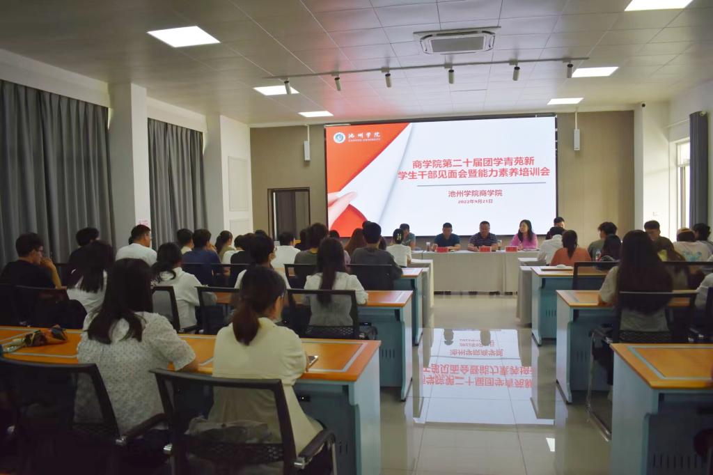 为加强商学院团学干部队伍建设,进一步提高团学干部的工作能力及综合素质,增强新一届团学干部的向心力和凝聚力。2022年9月21日下午,在博识楼北401举行了新一届团学干部见面会暨能力素养培训会。商学院党委书记罗志刚、副书记肖宁生、党办主任苏飞、教学办主任王丹、团委副书记章健和全体团学干部参与会议,会议由学工办主任胡刚主持。