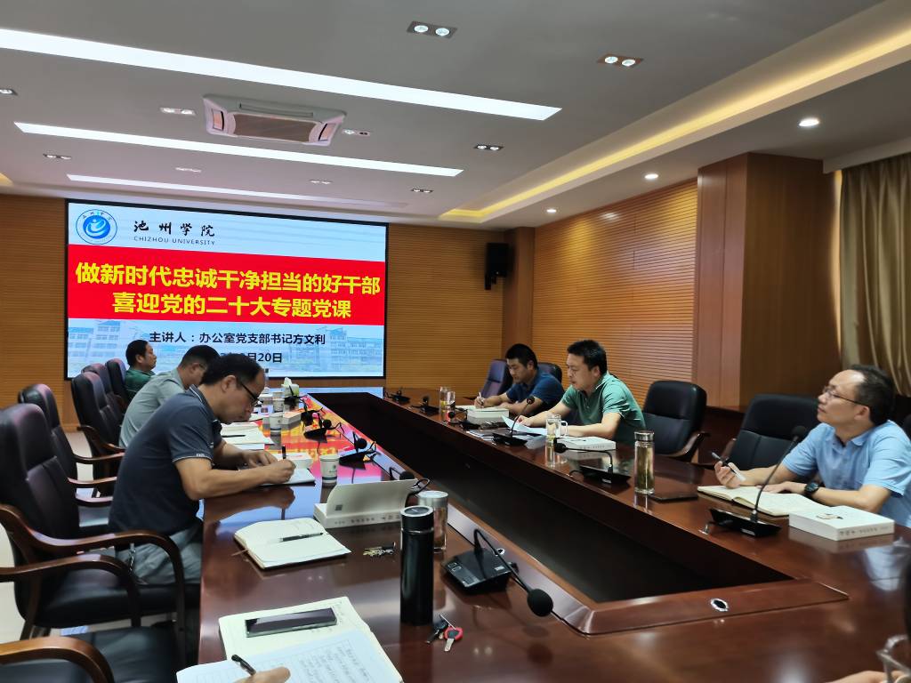 9月20日下午,在行政北二楼会议室,办公室(党办、校办、外事办)党支部书记、主任方文利结合办公室工作实际,以“做新时代忠诚干净担当的好干部”为题,为办公室全体党员作了一场主题鲜明、立意深远、感悟深刻的专题党课。