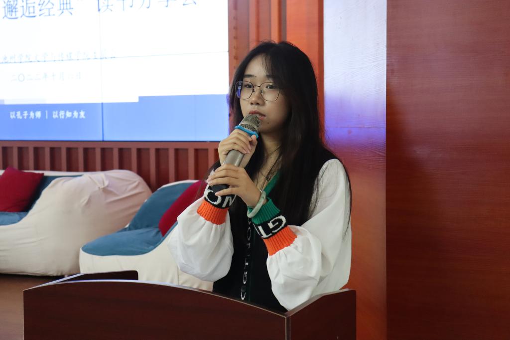 在分享会上,同学们紧紧围绕主题、联系实际生活,积极踊跃、激情澎湃地分享自己准备的文学经典片段,通过经典作品来表达对祖国的热爱与祝福。