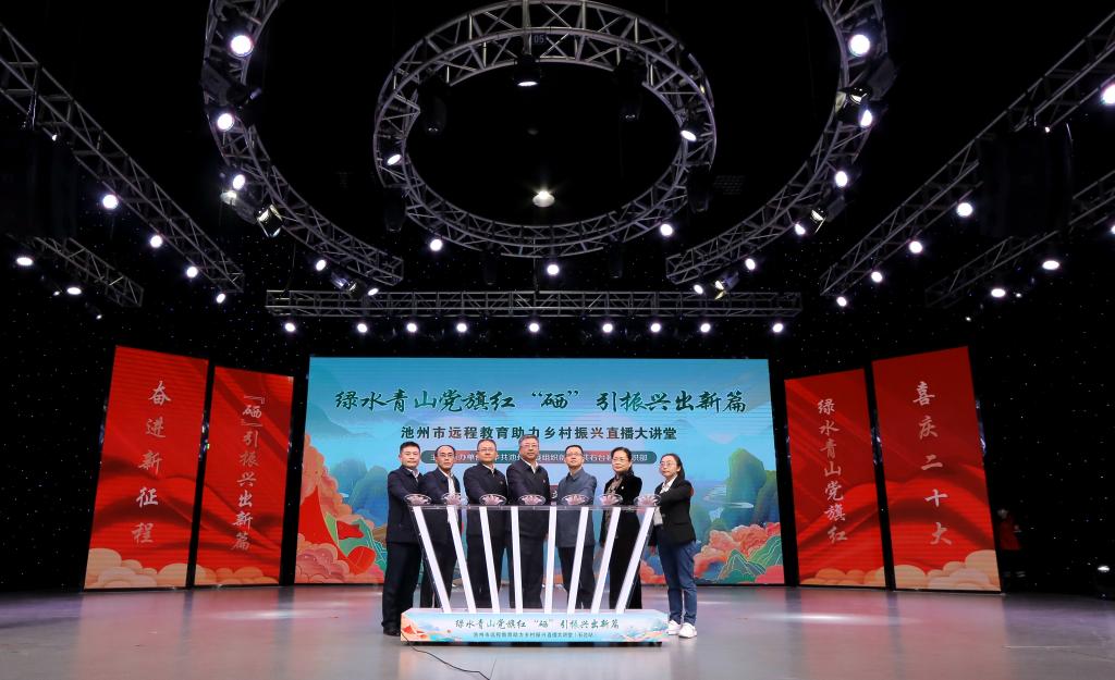 2022年10月18日上午,池州市远程教育助力乡村振兴直播大讲堂(石台站)活动在石台县融媒体中心演播大厅举办。本次活动由中共池州市委组织部主办,中共石台县委组织部承办,活动以“绿水青山党旗红,‘硒’引振兴出新篇”为主题,分“启动仪式”“直播大讲堂”两阶段展开,并通过省市先锋系列平台向全省进行现场直播。池州市委常委、组织部长廖强,石台县委书记靳武等领导出席本次活动,研究院院长谈家胜教授应邀出席并担任访谈嘉宾。