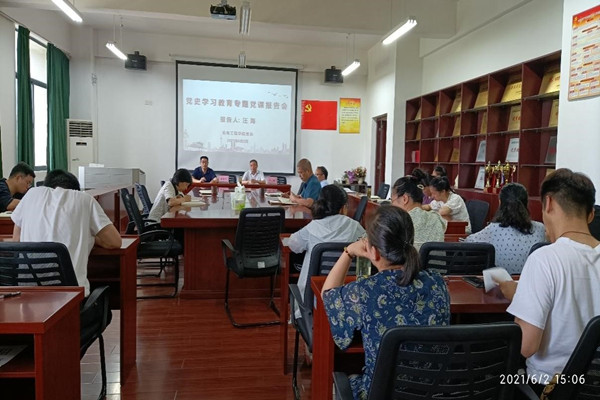 6月2日下午,校党委委员、纪委书记汪海到机电工程学院作党史学习教育专题辅导报告。