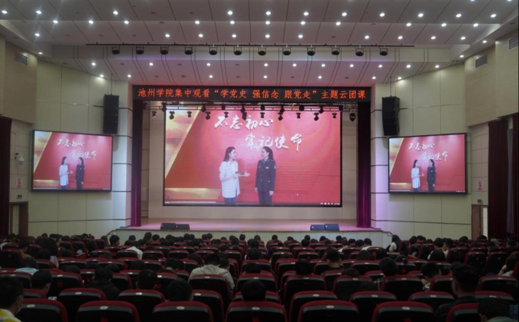 团员代表于博古礼堂集中观看了“学党史、强信念、跟党走”学习教育主题云团课。通过观看《觉醒年代》《山海情》等主旋律影视剧片段,青年学子们回顾了党团结带领人民不懈奋斗的光辉历程,体验了一段震撼心灵的红色之旅,加深了对中国精神与中国力量的认识和理解。