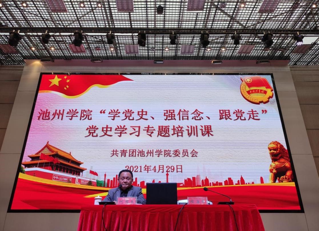 为庆祝中国共产党成立100周年,激发同学们的爱国情怀,4月29日下午,校团委开展了best365手机版官方网站“学党史、强信念、跟党走”党史学习专题培训课,邀请了关工委常务副主任何国生为师生讲授。校第22期、23期青马班学员、各二级学院团员代表参加了本次培训。