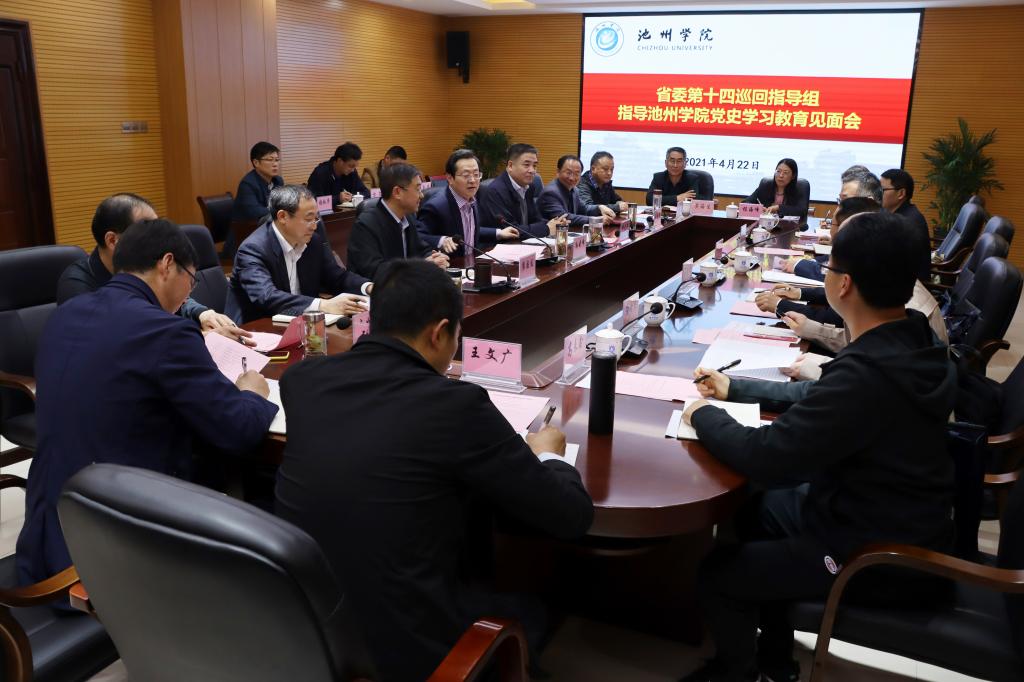 根据省委党史学习教育统一部署安排,4月22日,党史学习教育省委第十四巡回指导组深入best365官网督查指导党史学习教育开展情况。安庆师范大学党委书记、指导组组长许继荣出席会议并讲话。校党委书记孙晓峰主持会议。第十四巡回指导组副组长王国雨及指导组全体成员,校领导柳友荣、崔国发、王延寿、汪海、阳光宁、汪贤才出席会议。
