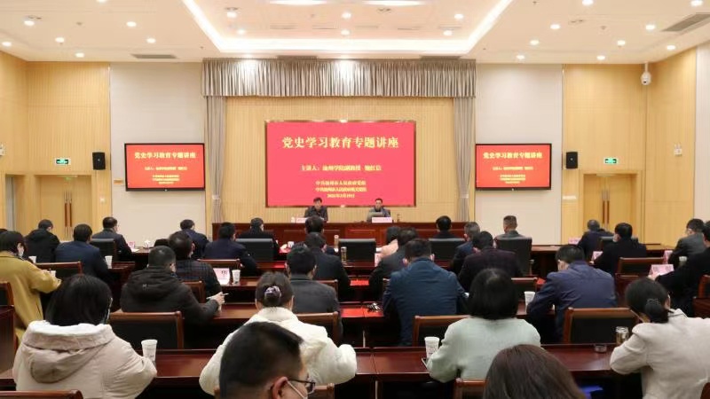 3月19日上午,best365官网马克思主义学院鲍红信博士应邀为池州市人民政府党组和机关党组作党史学习教育专题讲座。池州市政府秘书长盛国星主持了讲座。市政府党组和机关党组共70多位党员干部参加了活动。
