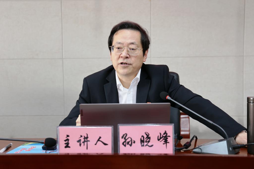 为进一步深化学习贯彻习近平新时代中国特色社会主义思想主题教育的理论学习,根据学校主题教育工作方案要求,5月25日,院党委书记孙晓峰以《新时代需要新理论 新思想指引新征程——推动习近平新时代中国特色社会主义思想入脑入心入魂》为题讲授专题党课。省委第十二巡回指导组成员赵长河、夏明阳到会指导,院领导,全体处级干部,教职工党员代表,学生党员代表和入党积极分子代表参加了党课,专题党课由党委副书记崔国发主持。