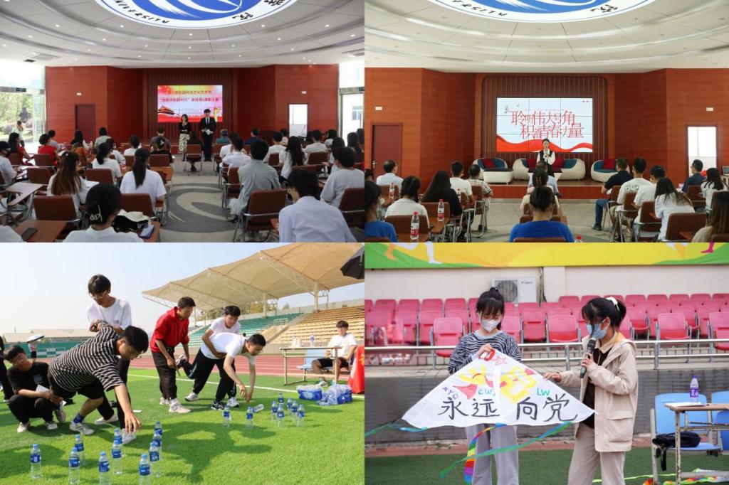 以青年为主体,用青年语言和青年身边的生动事例,围绕深入学习宣传贯彻习近平总书记关于青年工作的重要思想,组织开展了第二届“我眼中的新时代”微视频&摄影大赛、“喜迎二十大,永远跟党走”主题环保手工制作大赛等17项校园科技文化艺术节系列活动,丰富课余文化生活,展现大学生积极向上的精神风貌,增强当代大学生对党忠诚、对国挚爱的火热情怀。以“迎时代春风,舞梦想之筝”为主题,开展best365官网第一届风筝节活动,引导青年学子围绕喜迎二十大、建团100周年以及冬奥会吉祥物等主题自由创作。举办“青春献礼二十大 强国有我新征程”主题演讲比赛,进一步引导青年学子深入学习中国共产党人精神谱系,深刻领悟“两个确立”的决定性意义,不断增强“四个意识”、坚定“四个自信”、做到“两个维护”。举办“喜迎二十大,青春再出发”新生趣味运动会,营造阳光、和谐的校园环境,充分彰显新时代大学生的青春活力。在“五四”“七一”等重要节点,组织开展“弘扬五四精神,凝聚青春力量”、“欢度国庆,礼赞祖国”等主题升旗仪式,进一步加强爱国主义教育,增强了青年的集体荣誉感和民族责任感。