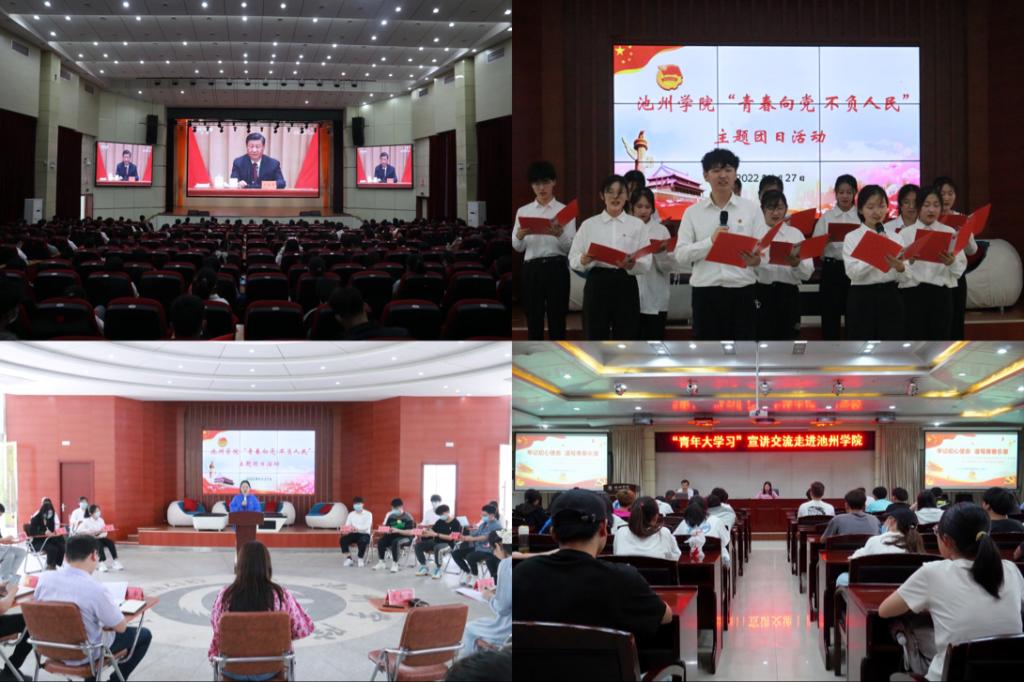 围绕迎接和学习宣传贯彻党的二十大,结合庆祝建团100周年,积极组织和动员各级团组织、学生会组织和学生社团,开展了习近平新时代中国特色社会主义思想专题学习会、“世界读书日”主题交流分享、“青春向党 不负人民”特别主题团日活动、“青春心向党 建功新时代”五四主题系列活动,进一步筑牢广大青年学子的思想根基。组织集中观看习近平总书记在中国人民大学考察调研的视频和庆祝中国共产主义青年团成立100周年大会实况直播,召开交流座谈会,引导广大师生围绕习近平总书记的重要讲话精神畅谈感想和体会。邀请中共安徽省委讲师团机关党总支负责人、二级调研员、省委讲师团青年宣讲专家吴晓云作《牢记初心使命 谱写青春乐章——学习习近平总书记在庆祝中国共产主义青年团成立100周年大会上的重要讲话精神》专题宣讲,引导青年深刻领会习近平总书记对青年一代健康成长的重要要求和对新时代团员青年的殷殷嘱托,感悟永远听党话、跟党走的初心使命。